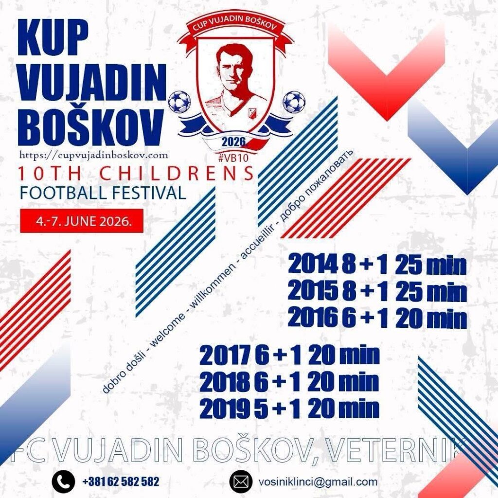 U Novom Sadu u organizaciji omladinskog pogona „Vošini klinci“ fudbalskog kluba „Vojvodina“ Novi Sad u periodu od četvrtka 04.06.2026. godine do nedjelje 07.06.2026. godine planirano je održavanje desetog po redu međunarodnog dječijeg fudbalskog festivala „Kup Vujadin Boškov“. Turnir će se odigrati na terenima fudbalskog centra „Vujadin Boškov“ u Veterniku (Novi Sad).