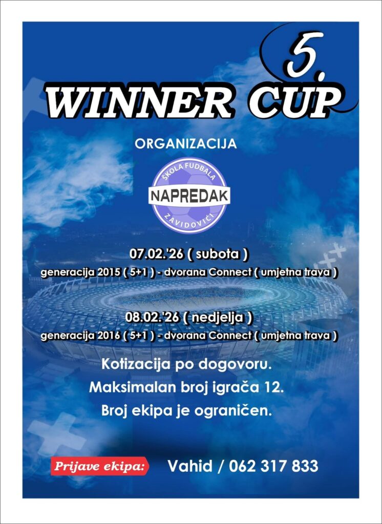 U Zavidovićima u organizaciji Škole fudbala „Napredak“ Zavidovići u periodu od subote 07.02.2026. godine do nedjelje 08.02.2026. godine planirano je održavanje petog po redu turnira za mlađe kategorije „Winner Cup“. Turnir će se odigrati u dvorani Connect u Zavidovićima na vještačkoj travi.